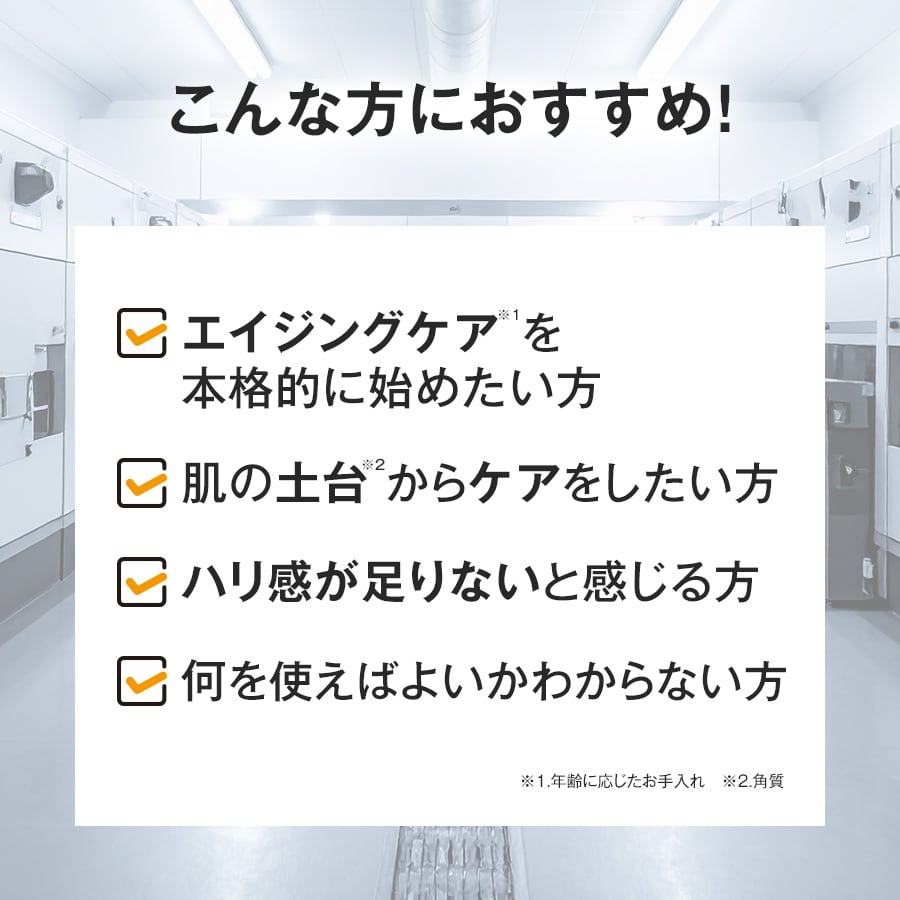 水溶性エッセンスの美容成分は肌の油脂膜によってはじかれやすいですが、乳液の持つソフトなミルク作用で潤いを与え、肌を整えていきます。肌の乾燥、弾力の低下にいつもの保湿ケアでは物足りない人におすすめです。乾燥を防ぐと同時に使用感はなめらかで化粧下地としても使いやすいタッチとなっています。
