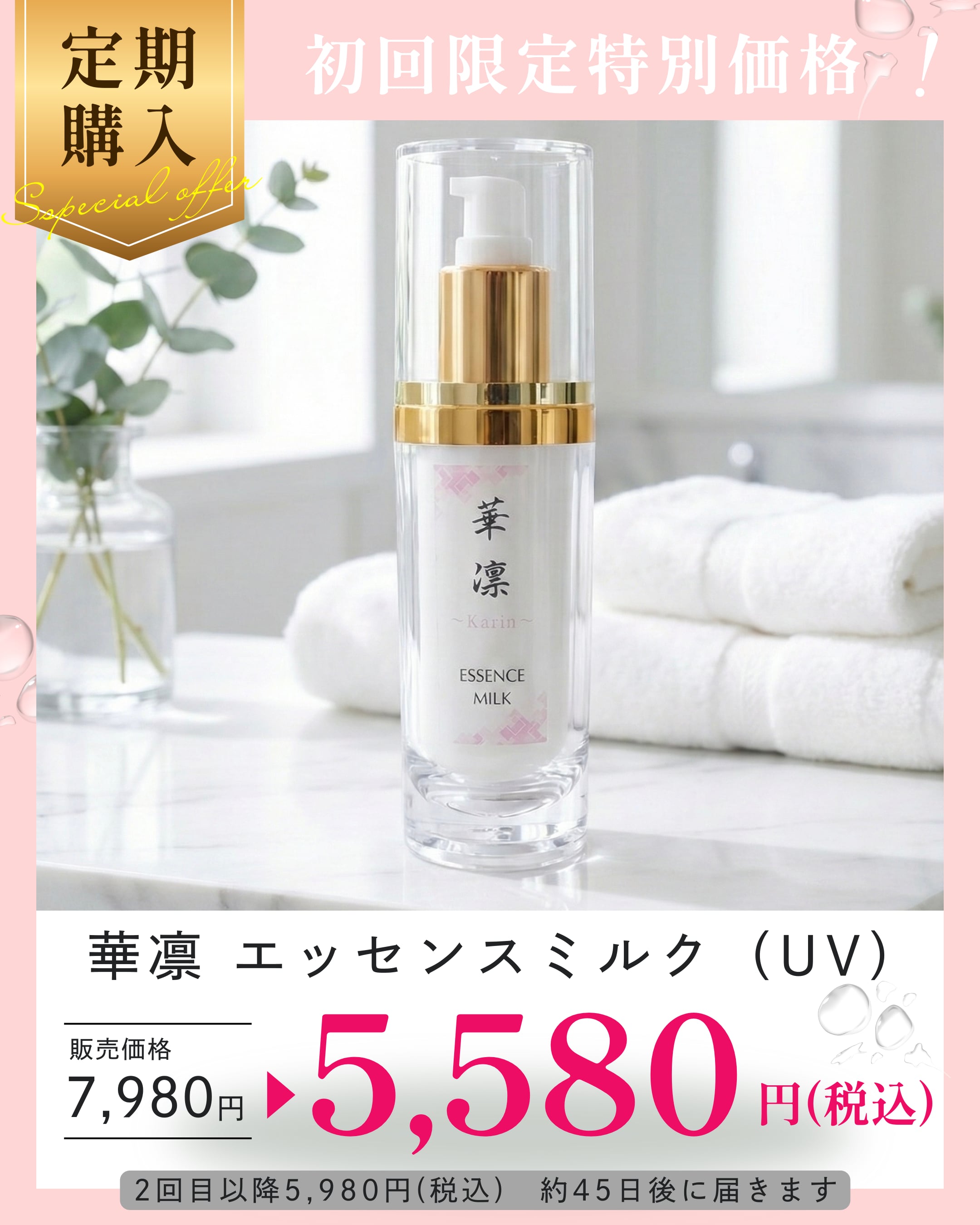 華凛エッセンスミルクで、潤い溢れる美肌を保ちましょう。この機会にぜひお試しください!